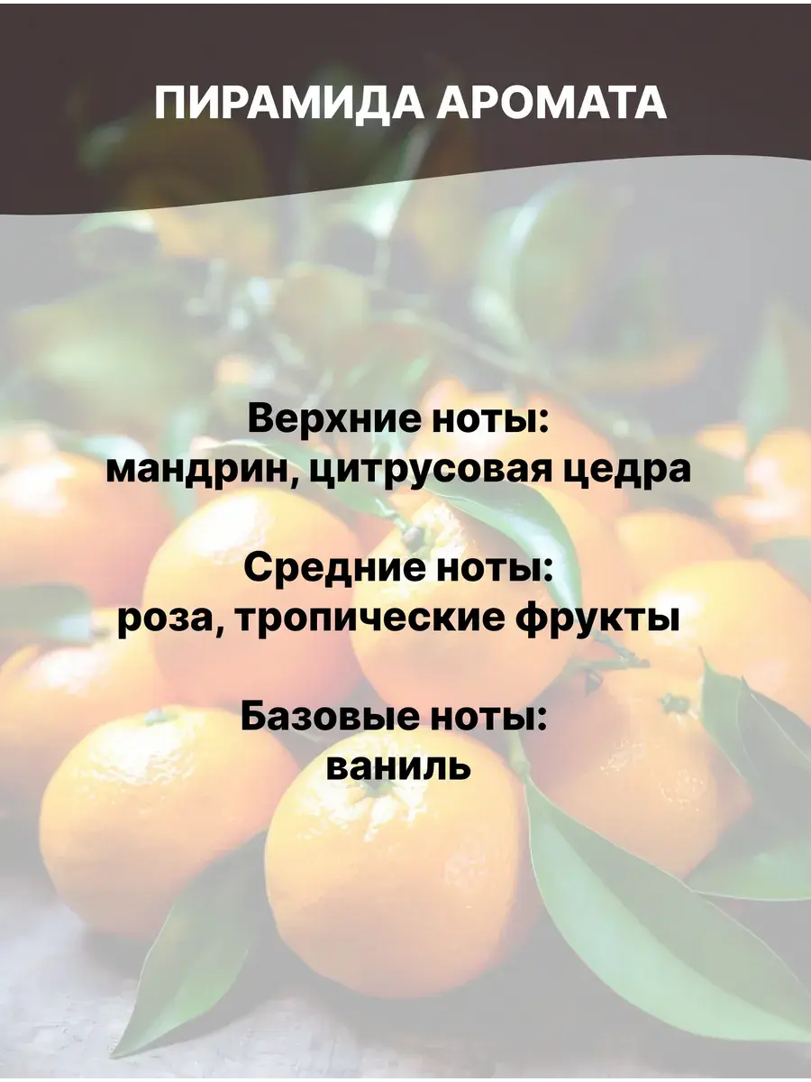 Отдушка «Клементин» — это аромат солнечного настроения, концентрированная радость в каждой капле. Представьте себе тёплый средиземноморский сад, где на ветвях сияют золотистые плоды: их тонкая кожура источает свежий цитрусовый аромат, а под ней скрывается сочная, медово‑сладкая мякоть. Это не просто запах — это витаминный заряд бодрости и ощущение бесконечного лета.
