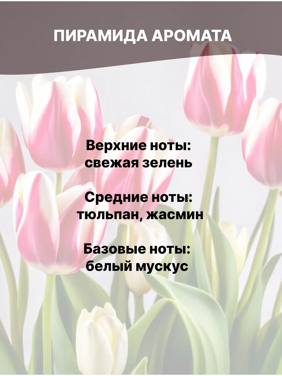 Отдушка «Тюльпан» — это аромат ранней весны, хрупкой красоты и пробуждающейся нежности. Представьте себе солнечный сквер, где на клумбах распускаются первые тюльпаны — их лепестки ещё хранят утреннюю росу, а воздух наполнен тонким, изысканным благоуханием. Это не просто запах — это воплощение свежести и обновления в каждой капле композиции.